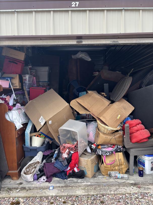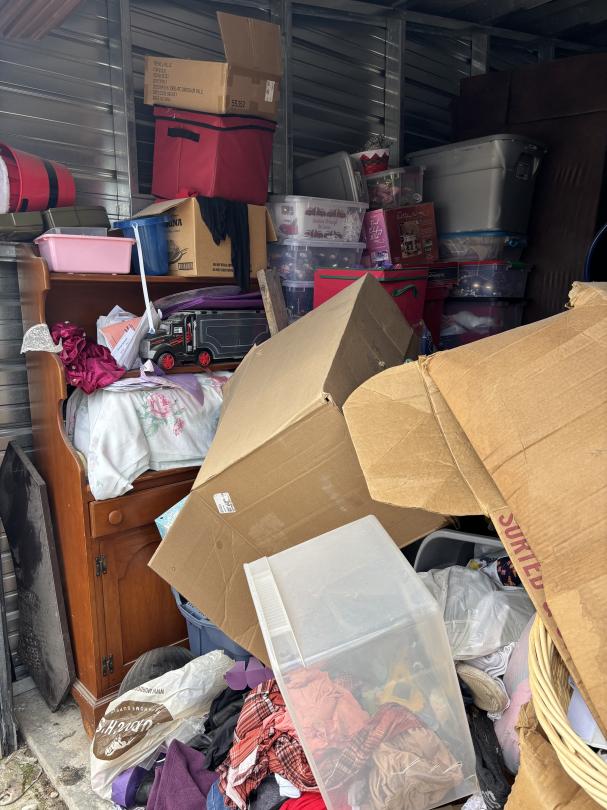 This unit appears to contain…This unit contains Christmas decor, furniture, clothing and misc totes and boxes