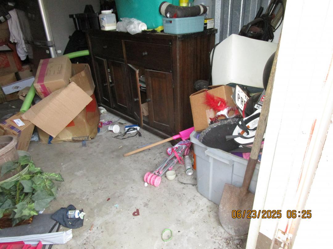 This unit appears to contain…refrigerators, dresser, boxes, totes
