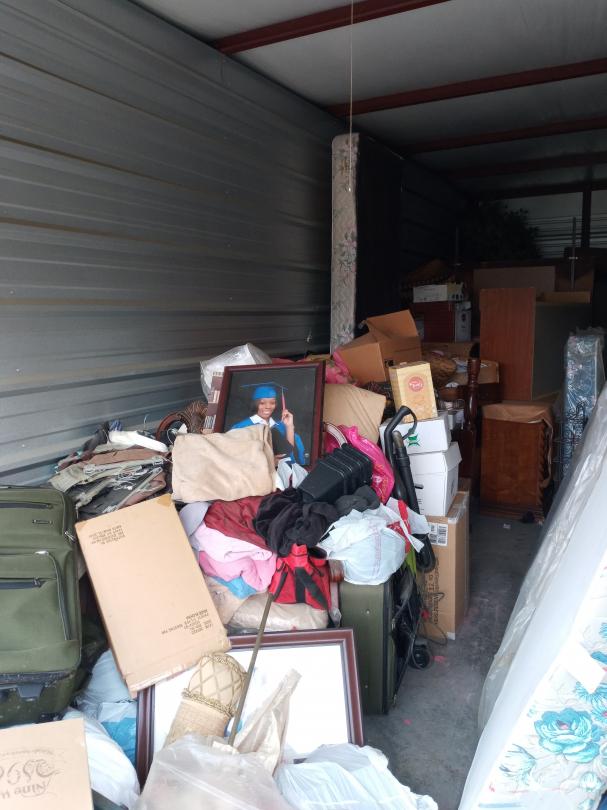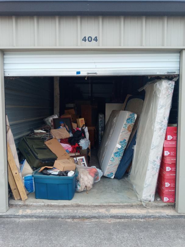 This unit appears to contain…MATTRESS, BOXES, TOTES, FURNITURE, CLOTHES