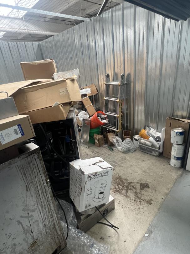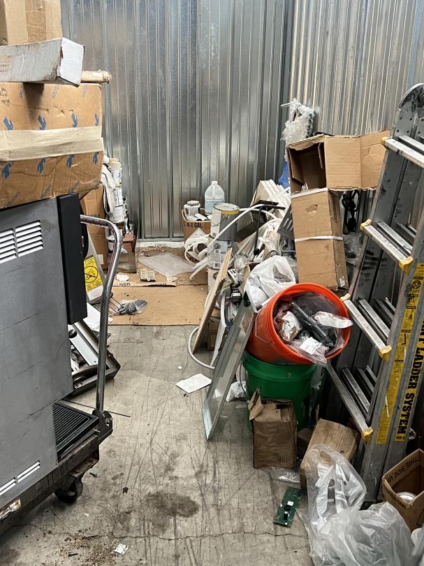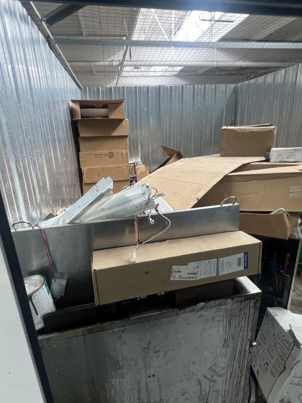 This unit appears to contain…UNIT APPEARS TO CONTAIN FOOD SERVICE EQUIPMENT, LADDERS, PAINT, BOXES, BAGS AND BUCKETS. SEAL 1369415