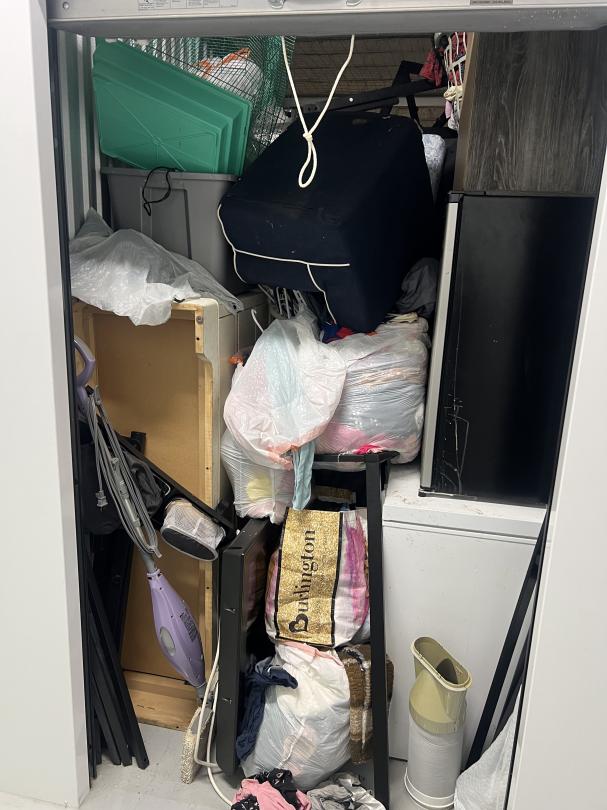 This unit appears to contain…UNIT APPEARS TO CONTAIN CHEST FREEZER, MINI-FRIDGE, VACUUM CLEANER, BIRD CAGE, CABINET, DRESSER, CLOTHES, TELEVISION, TOTES, HANGERS, AND BAGS. SEAL 063788