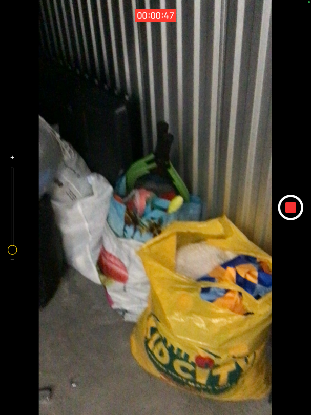 This unit appears to contain…Tires, bikes, boxes, totes, bags, suitcases, lamps, lawn furniture Seal: 1932130