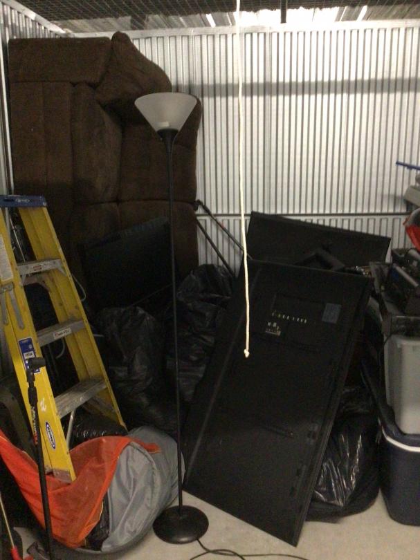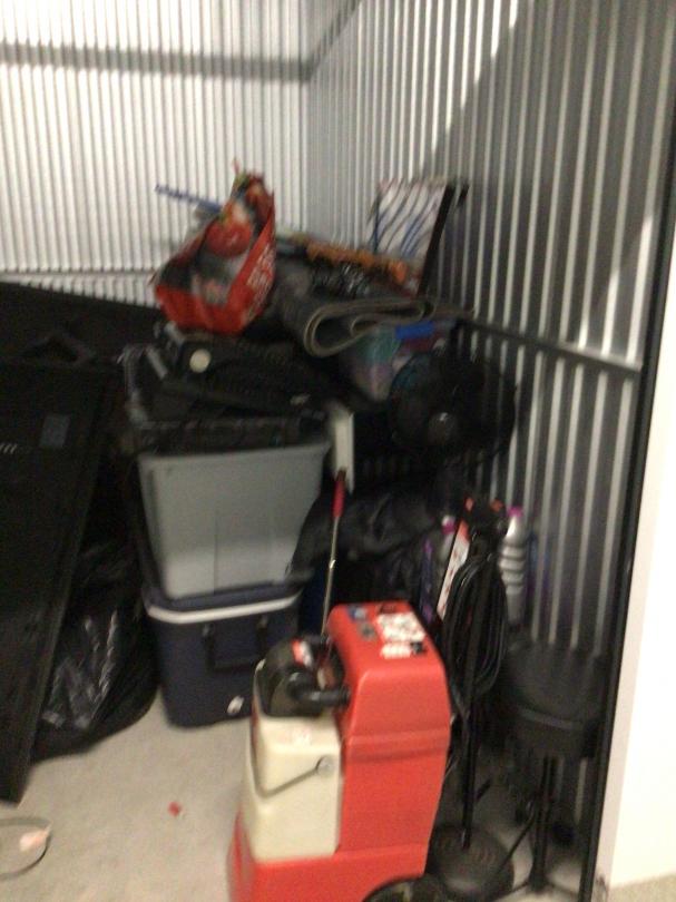 This unit appears to contain…couch, bags, tv, drum set, DJ equipment, golf bag, Seal:3585576