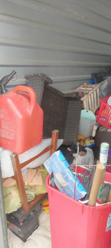 This unit appears to contain…TVs, furniture, clothes, bags, duffle bags, dishes, toys, decorations, large jack