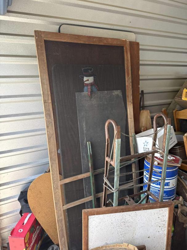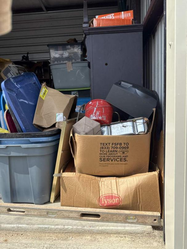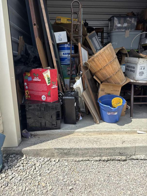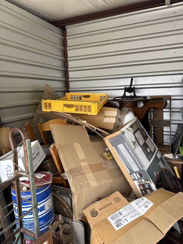 This unit appears to contain…24/7 Access, Drive Up Access, Fenced & Gate, Premium cabinet, boxes, storage boxes, chairs, random household items