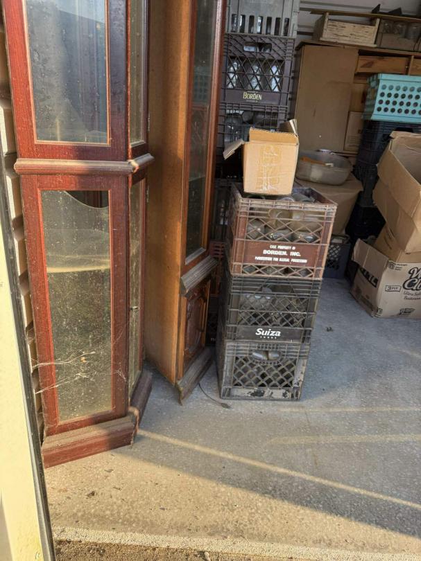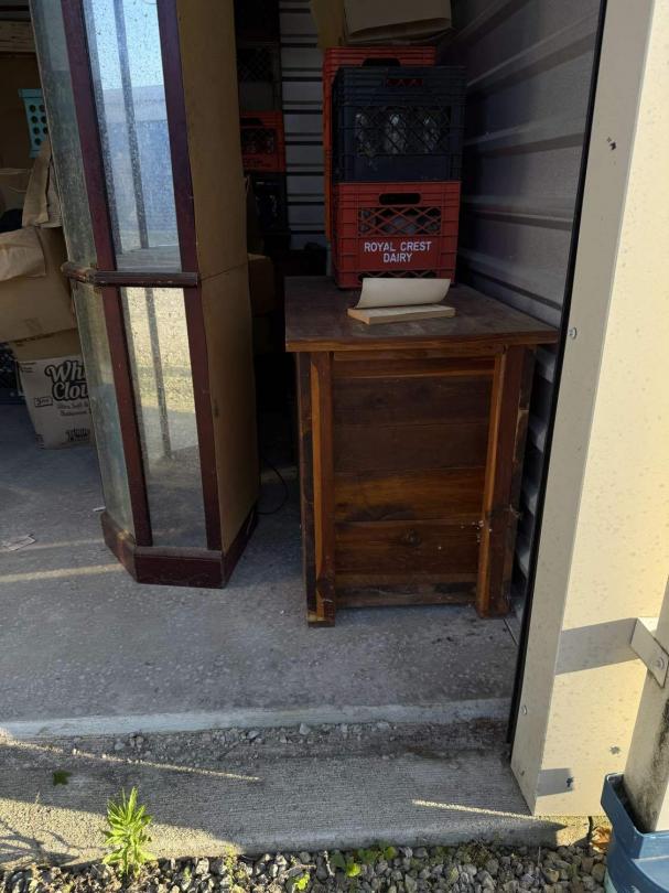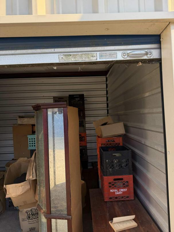 This unit appears to contain…24/7 Access, Drive Up Access, Fenced & Gate, Premium Glass cabinets, dresser, glass jars, milk crates