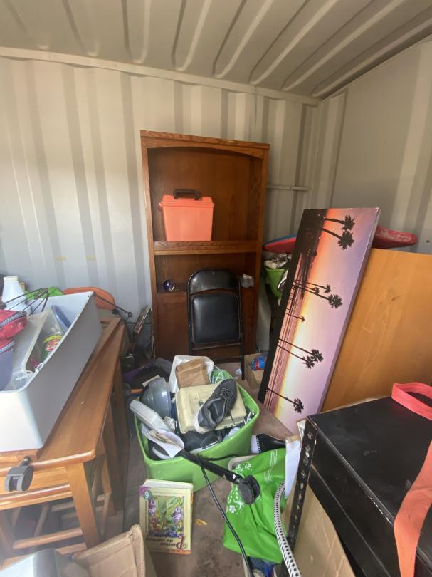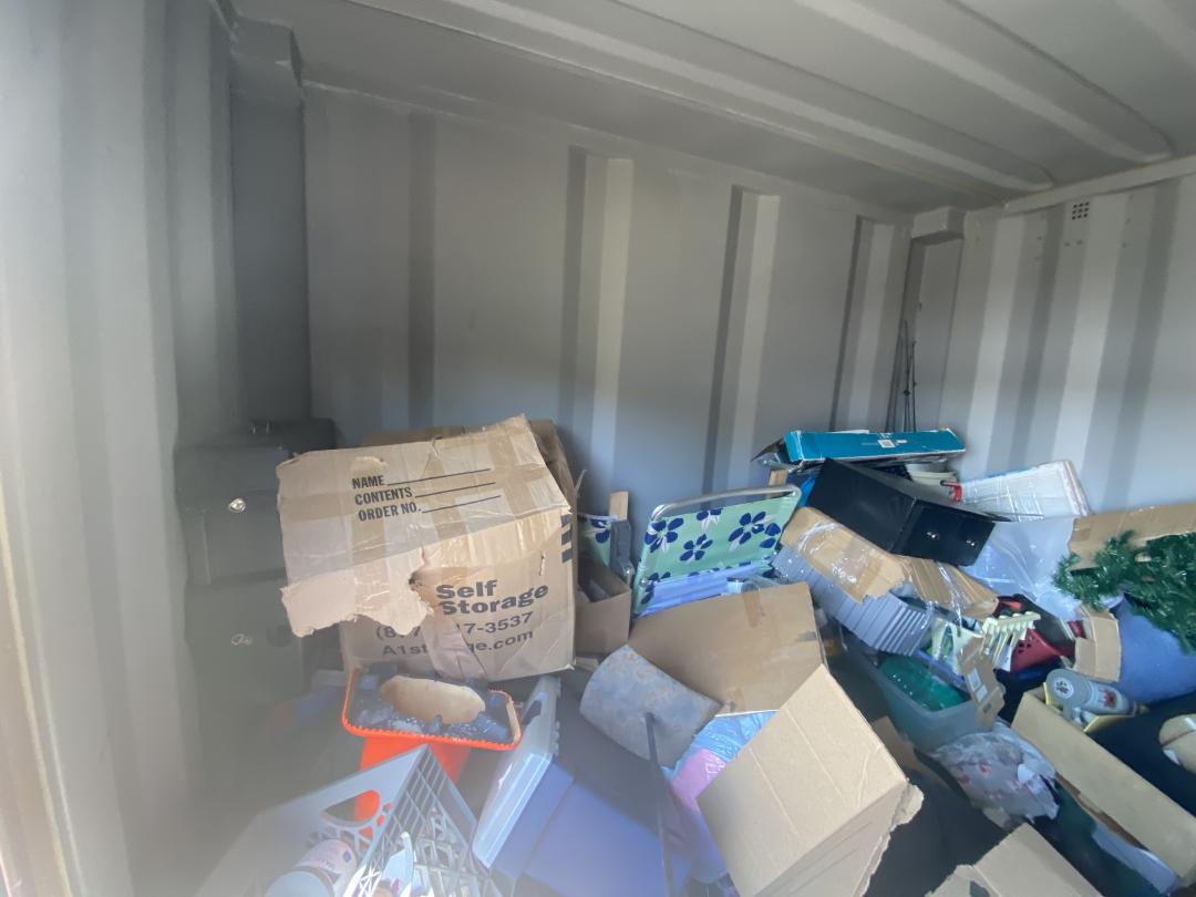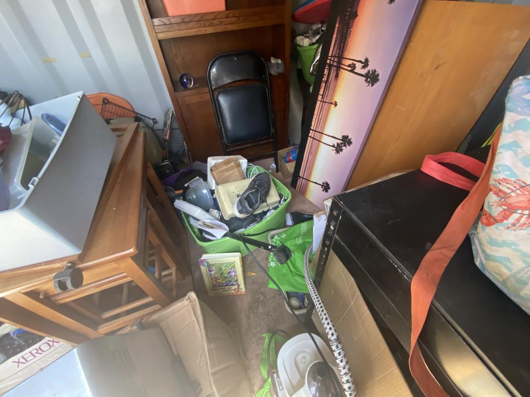 This unit appears to contain…Basket, Canvas Portrait, Boxes, Plastic Bins, Shoes, Furniture, Christmas Tree, Fishing Poles, Beach Chairs, Laptop, Clothes