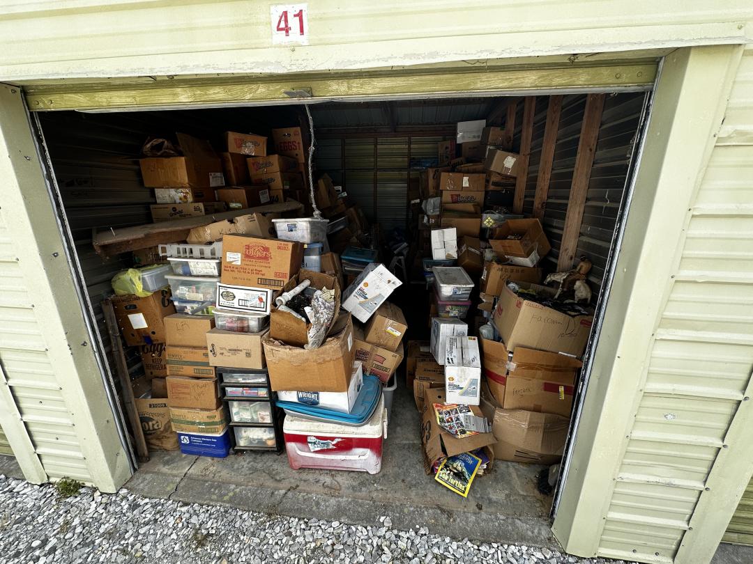 This unit appears to contain…Well organized unit. Boxes labeled as kitchen and living room. Lots of DVDs. Like a lot of DVDs. Old console games. Possibly collectibles.
