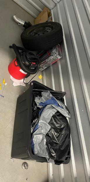 This unit appears to contain…tire, tote, air mattress, shop vac, keyboard, filter, boxes