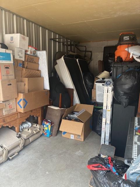 This unit appears to contain…10X20 UNIT Various items in unit including: - Furniture - Speaker equipment - Records/Record player - Sound board - Keyboard - Old school gaming station -Patio furniture - Shoes/clothing