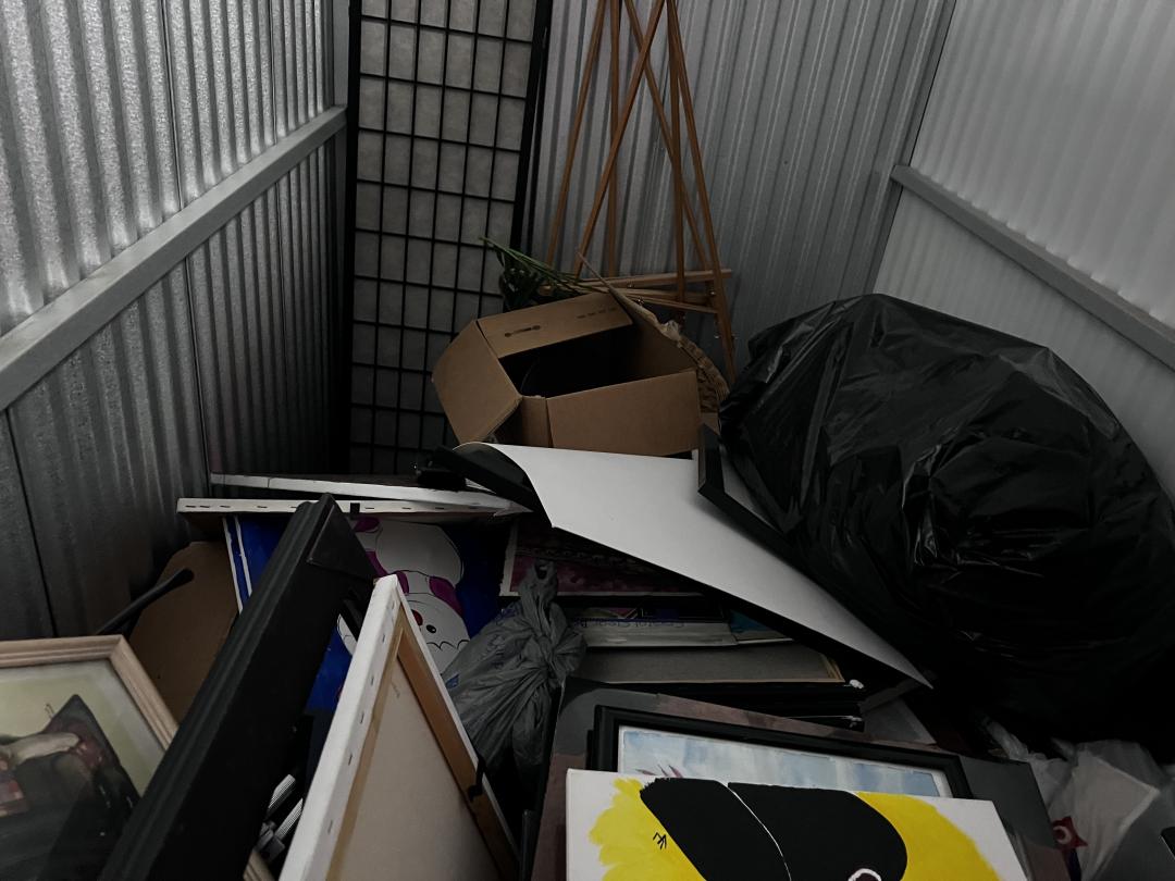 This unit appears to contain…Folding Table, Boxes, Wall Art, Boxes, Art Supplies