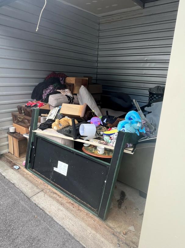 This unit appears to contain…Hutch, couches, dresser/drawers, typewriter, clothes, laudry basket, books, dog bed, entertainment center, tote, decor, lamp, cups, mugs, memorabilia