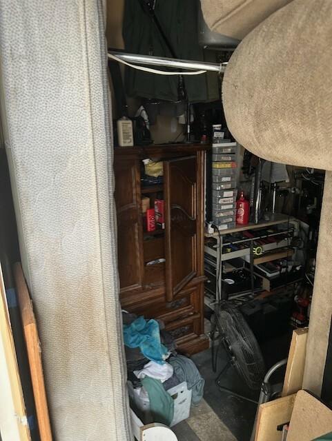 This unit appears to contain…tools, power tools, TVs, couches, shelving, mattress, dresser, chairs, bags, plastic crates, clothing, laundry basket, book bags, fan, care products, ladder, mattress pads